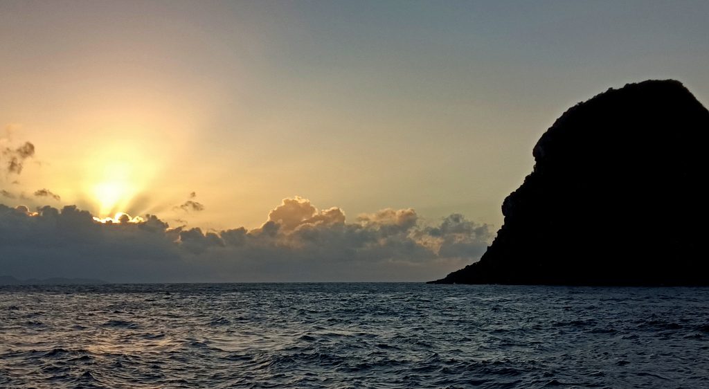 Le Robert La côte Caraïbe Quand l'homme de pierre contemple le levé du soleil Star Clipper En route vers la Dominique Quand un Iguane visite le bateau